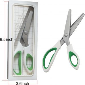 Green Pinking Shears Comfort Grips Crafts Zig Zag Cut Sewing Scissors, Professional Handheld Dressmaking