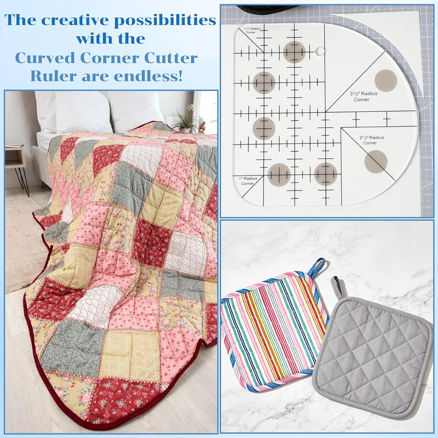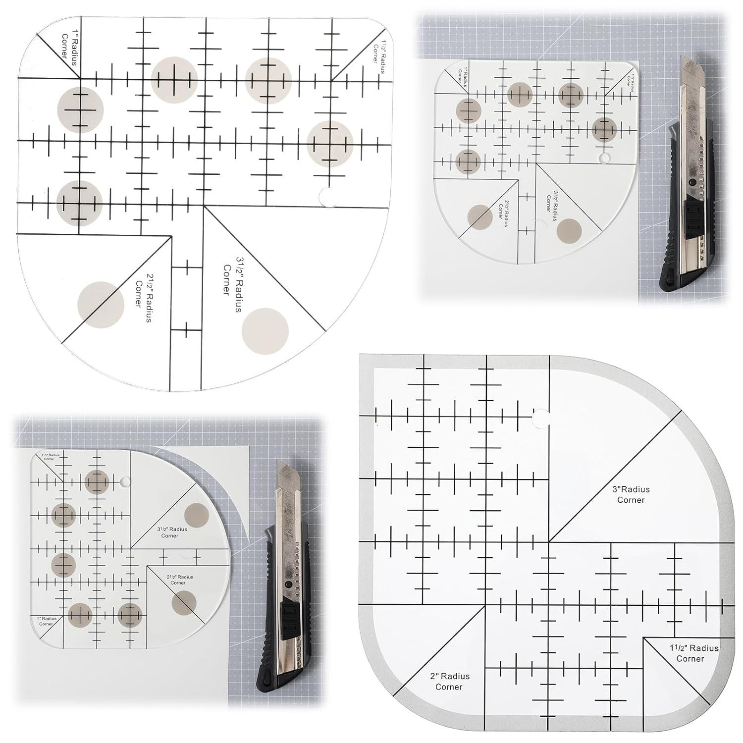 - 【Wide Applications】: These acrylic curve corner cutter quilting rulers are perfect for creating rounded corners on carpets, placemats, tablecloths and quilts. The sewing rulers quilting supplies are also suitable for making gentle curves in sewing projects, simplifying the binding process