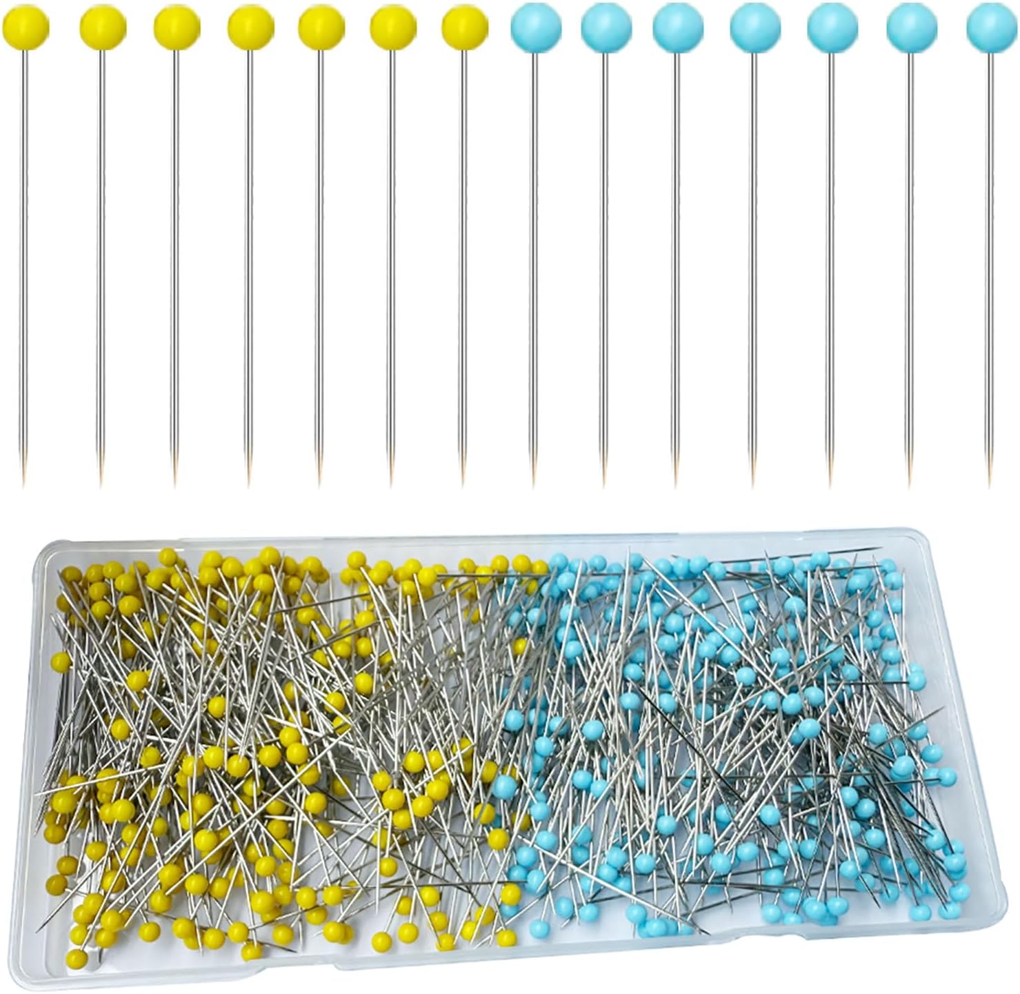 500 PCS Straight Pins, 1.75″ Sewing Pins with Long Glass Ball Head, Quilting Pins for Fabric, Stainless Steel Dressmaker for Sewing, Crafts, Jewelry Making, DIY (Yellow and Blue)