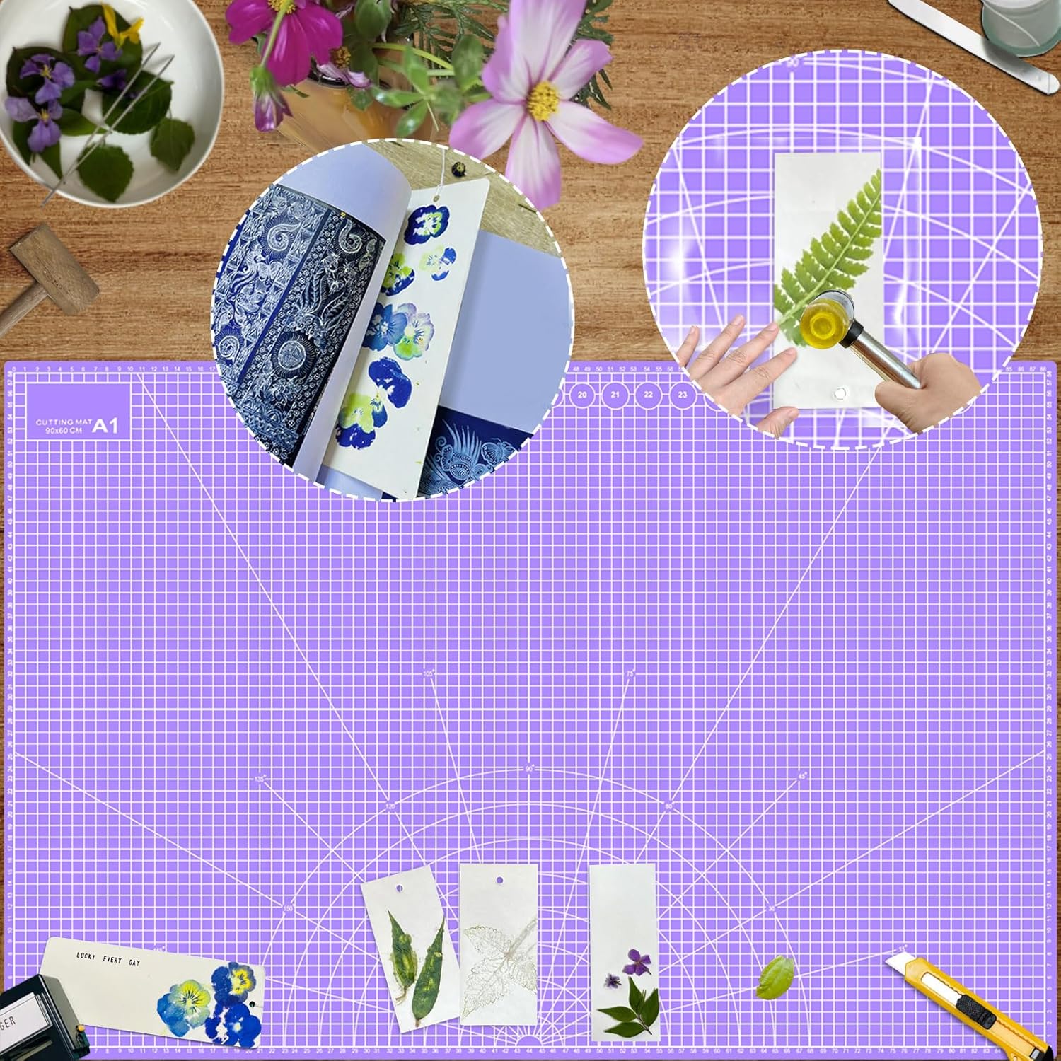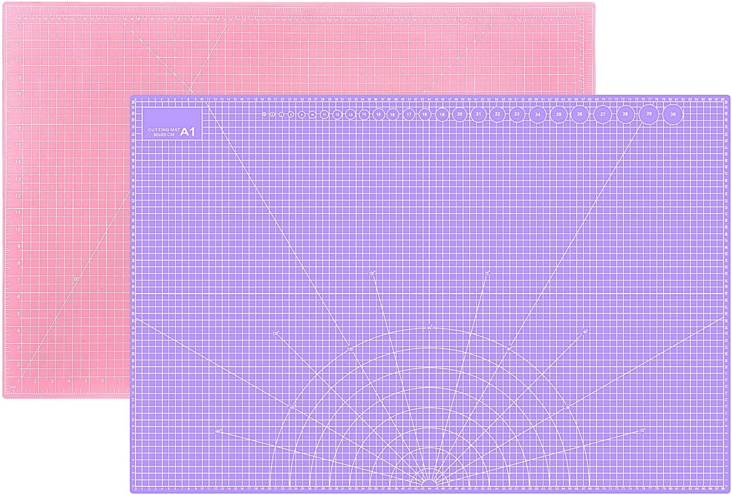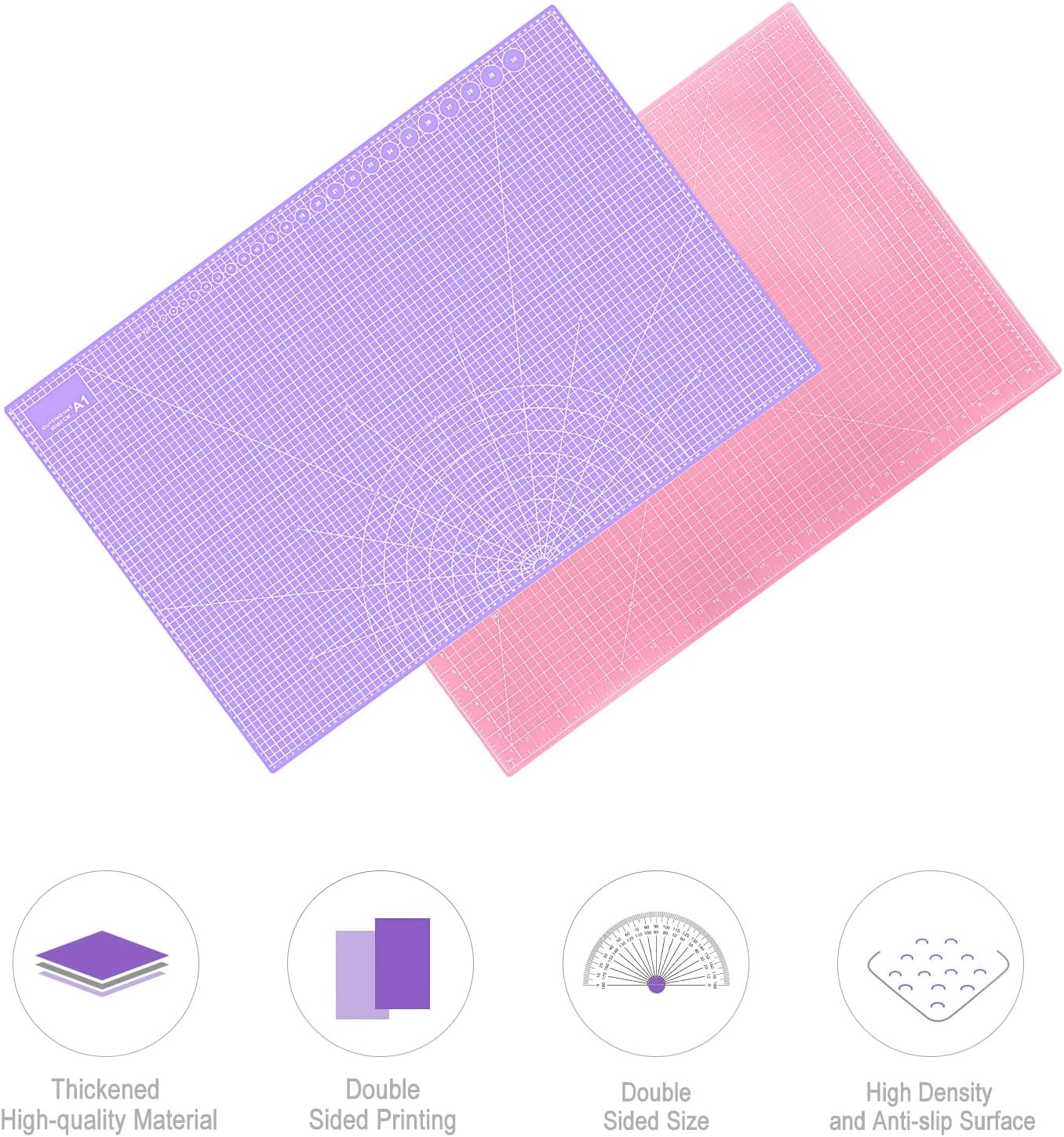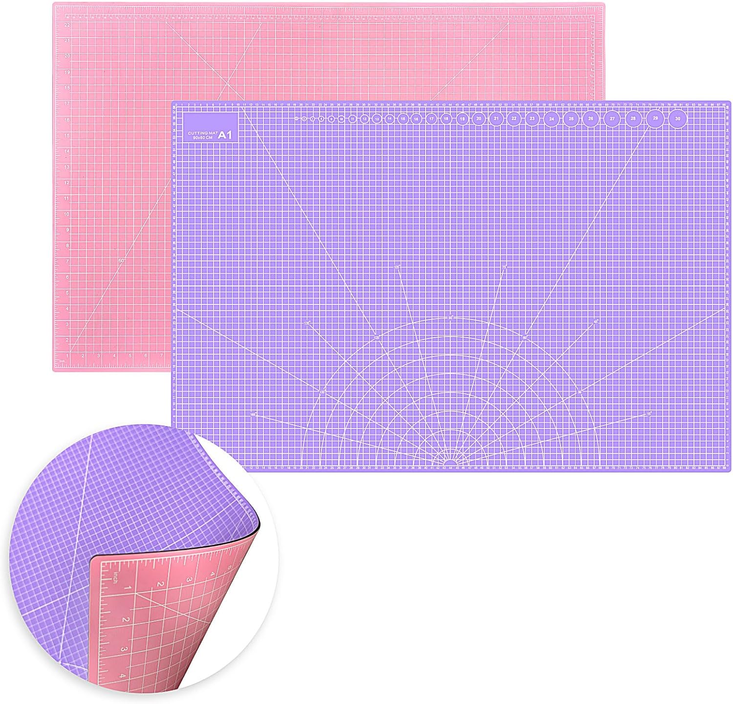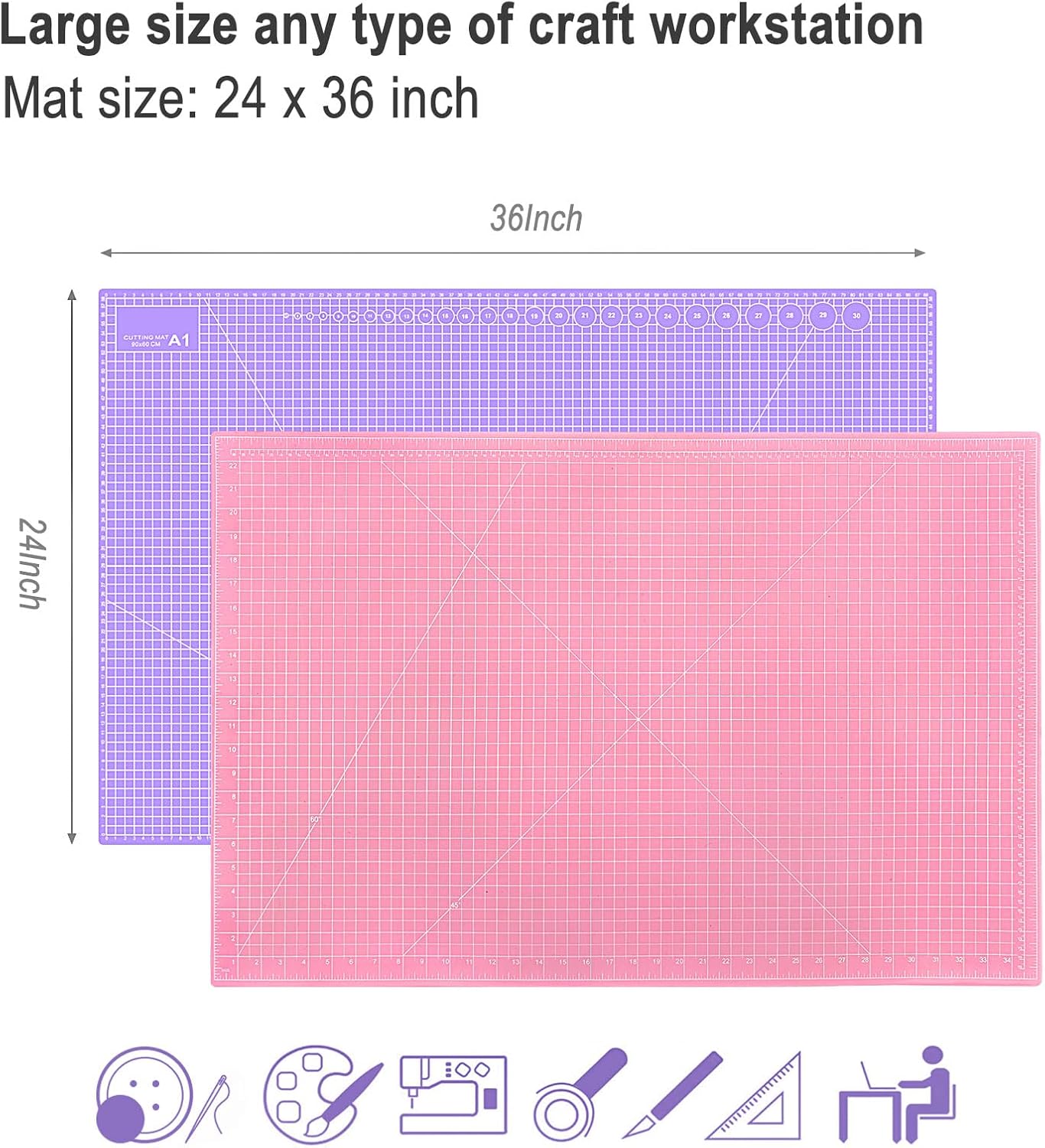 Double Sided Sewing Self-Healing Cutting Mat 24 x 36 Inches, A1 Size Craft Sewing Cutting Mat for Crafts and Fabric, Purple & Pink Design