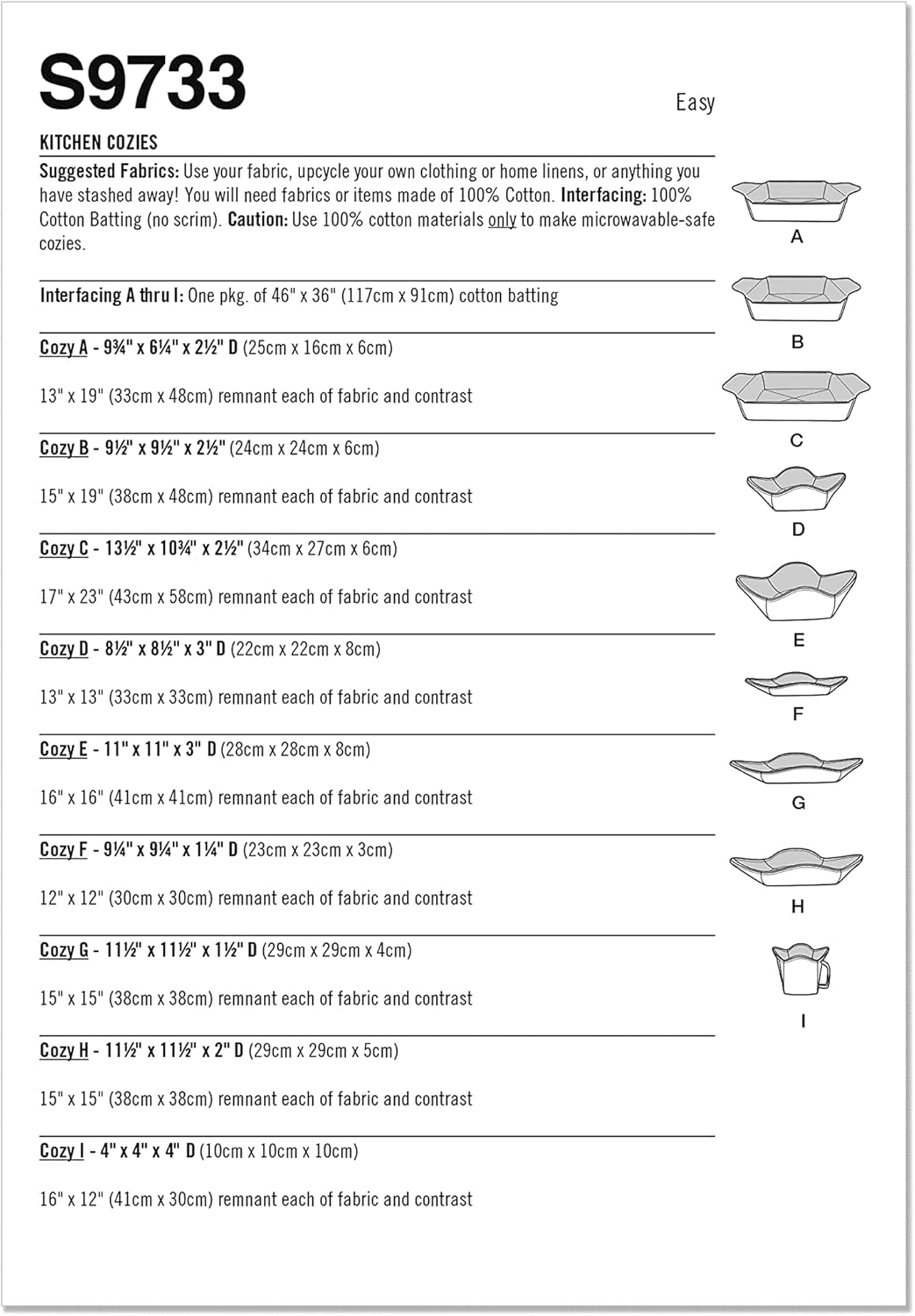 Simplicity SS9733OS Kitchen Cozies Sewing Pattern Kit, Code S9733, One Size