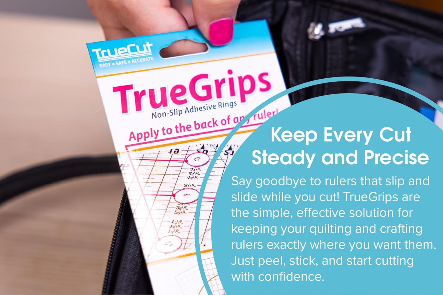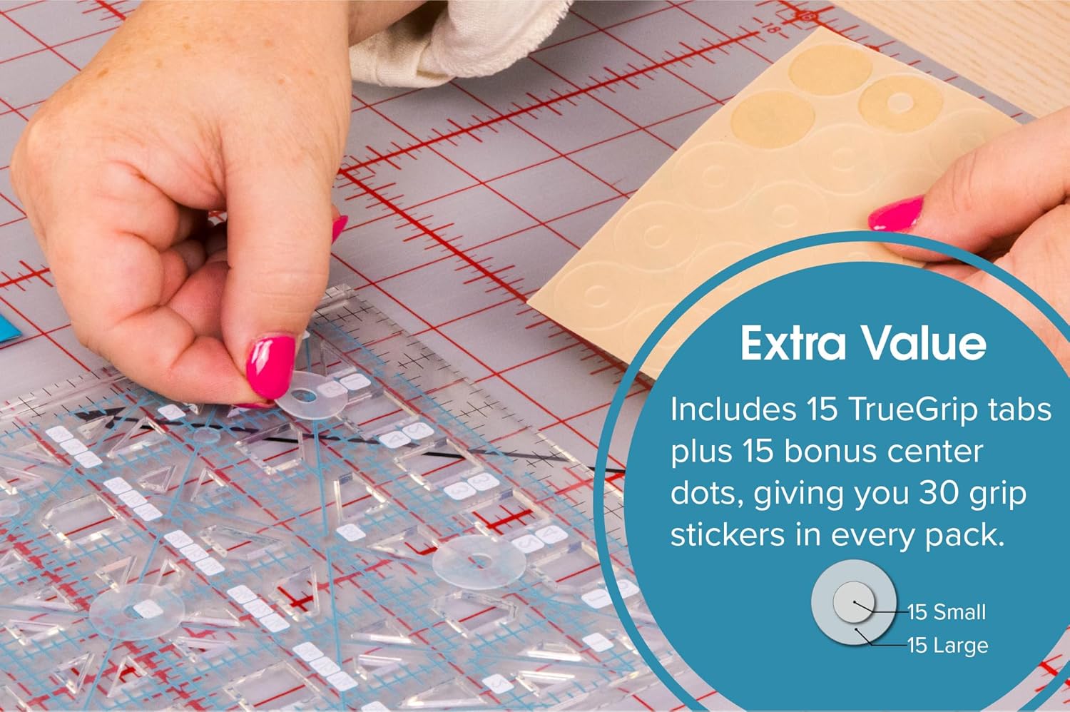 TrueCut TrueGrips Non-Slip Ruler Grips for Quilting Rulers | No-Slip Quilt Ruler Grip Dots | Quilting Supplies for Accurate Cuts