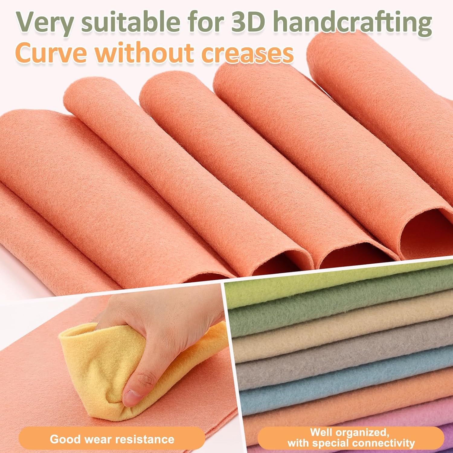 - High Quality: Our felt fabric is made of polyester fiber and fade resistant. They be cut cleanly and opaque in light, it can withstand extended use without wearing or tearing. or crumbling on the edge. Holding its shape well and easy to cut, fold, stitch, iron, sewing and staple for your needs.